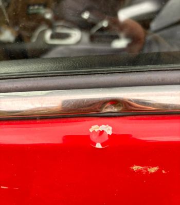 “But… suddenly we were surrounded by about half a dozen vehicles. We were rammed at least twice, the windows were shot out with ball bearings, and there are ball bearing strikes round the passenger window. Terrifying.