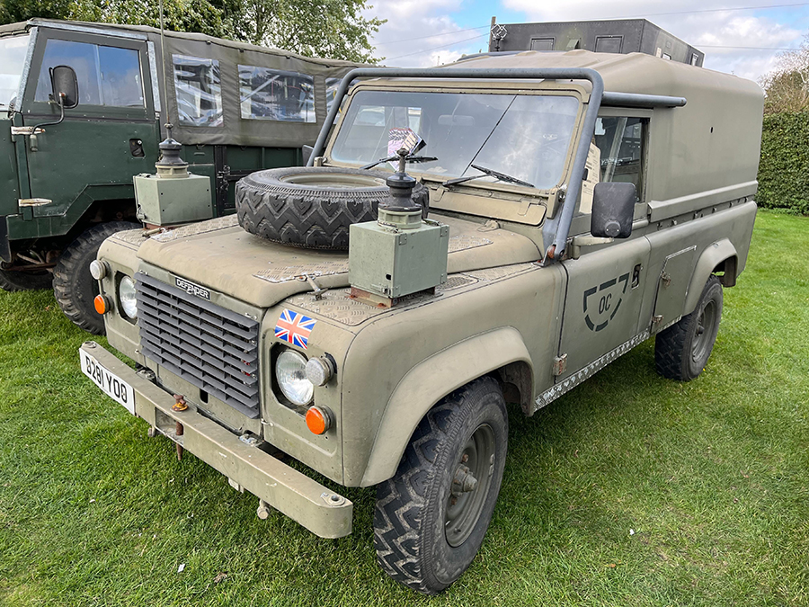 A 1986 110 Defender Tithonus. Powered by a 2.5L diesel engine, the Defender was used in military service from 1986 to 2012, its current owner has owned the vehicle for nine years.