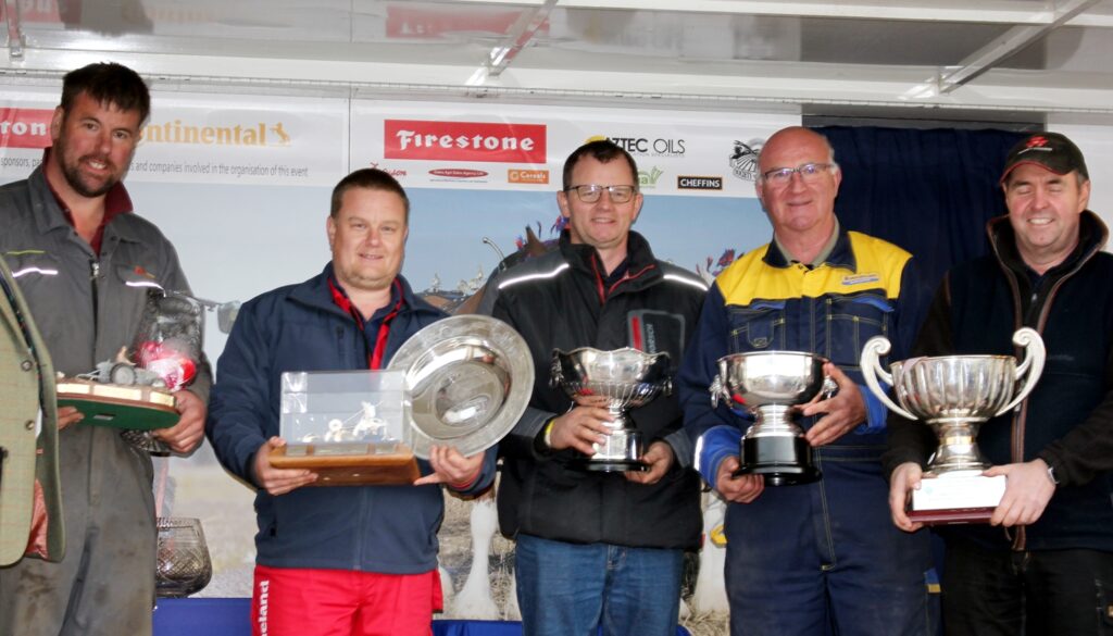 Five Champions – the winners of the Plough-Off Finals, from left to right, John Crowder, Ashley Boyles, Brian Baxter, David Thomlinson and Charlie Nicklin.