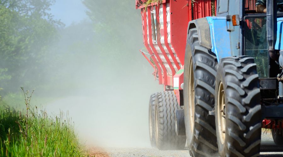 Tractor crashes at roundabout on Suffolk and Norfolk border